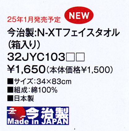 前の商品 32JYC103 今治製:N-XTフェイスタオル 次の商品