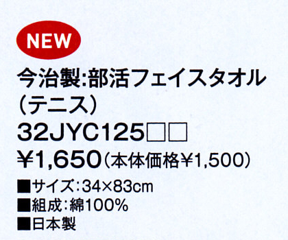 前の商品 32JYC125 今治製:部活フェイスタオル(テニス) 次の商品