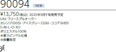 前の商品 90094 フリースプルオーバー【返品・交換不可】 次の商品