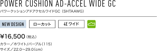 前の商品 【ソックスプレゼントキャンペーン】パワークッション アドアクセル ワイドGC  ホワイト/パープル(115) 次の商品