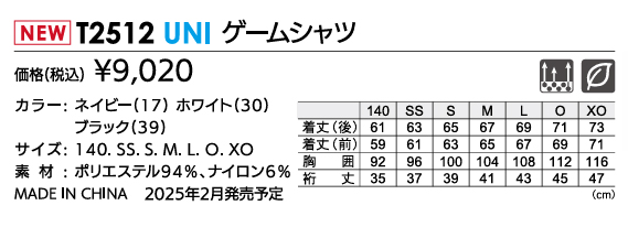 前の商品 【クリアランス】T2512 ゲームシャツ ※返品・交換不可 次の商品