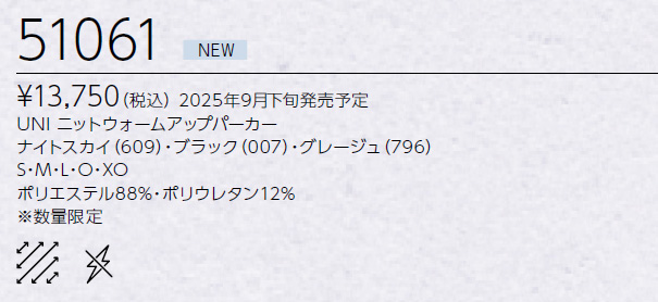 前の商品 51061 ニットウォームアップパーカー 次の商品
