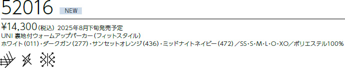 前の商品 52016 裏地付ウォームアップパーカー(フィットスタイル) 次の商品